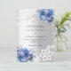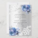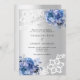 Pour une mariage élégante et romantique. Un arrière - plan à l'aspect faux argenté décoré de fleurs bleues, de roses et de dentelle blanche. Personnalisez et ajoutez vos noms et détails.