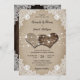 Ces invitations de mariage rustiques et élégantes, qui mettent en vedette des coeurs de burlap contre un burlap et un arrière - plan en dentelle orné de lampes à cordes, sont parfaites pour inviter vos invités à votre fête de mariage rustique de campagne/grange.