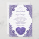 Complétez votre mariage violet avec ces élégantes invitations de mariage rustiques et violettes personnalisées, avec un coeur d'hydrangée sur un arrière - plan blanc clair orné de dentelle fleurie violette. Personnalisez facilement ces cartes de mariage violet avec vos coordonnées de mariage. Pour les articles correspondants, veuillez nous contacter via Zazzle conversation.