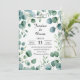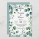 Un arrière - plan faire-part de mariage frais et moderne avec des branches d'eucalyptus luxuriantes peintes en aquarelle douce. Le socle blanc épuré renforce l'élégance naturelle, créant une esthétique minimaliste et intemporelle. Le centre est laissé en blanc, offrant un espace pour le texte personnalisé. Parfait pour les thèmes botaniques, rustiques et mariage contemporains.