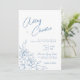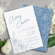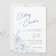 Invitation Mariage de dessin de ligne botanique bleu et blanc
