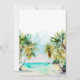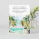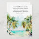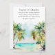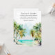 Cette belle et élégante faire-part de mariage d'aquarelle dispose d'une plage, d'un ciel bleu et de palmiers. Le texte combine écriture manuscrite et polices sans serif pour un look élégant et moderne. Il est parfait pour une plage d'été ou un mariage de destination tropicale.