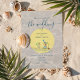 Invitation de mariage de plage de destination estivale moderne, élégante, avec océan, palmiers tropicaux illustration et script de calligraphie simple.