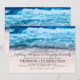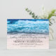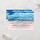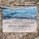 Invitation de mariage élégante en bord de plage avec un rivage sablonneux tropical, des vagues d'océan bleu profond et un modèle de mariage moderne facile à personnaliser.