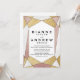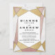 Cette carte de faire-part de mariage en diamant géométrique glam est parfaite pour un mariage moderne. Le design se compose d'un motif géométrique hexagone avec parties scintillant en faux or, feuille d'or en faux rose et texture en faux marbre décorant les espaces du motif. Remarque : Ce design ne présente pas de véritable parties scintillant en or, de feuille en or rose ou de marbre. C'est un graphisme de haute qualité fait pour ressembler à l'or, feuille d'or rose et marbre.