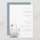 Cette élégante décoration fleur sauvage de couleur bleu azur présente des éléments botaniques peints à la main dans des tons doux et muets de bleu, beige et vert sauge. La faire-part de mariage idéale pour une mariage florale bleue poussiéreuse.