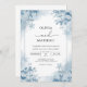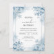 Évoquez un sentiment d'enchantement hivernal avec ce design. De délicieuses fleurs gelées et des lavages bleus cool créent une atmosphère sereine et romantique pour votre journée spéciale. Il chuchote d'un début tranquille et magnifique.
