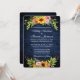 Bois bleu rustique de la marine, fleurs de tournesol d'aquarelle avec Roses, pivoines et Faire-part de mariage de verdure - Arêtes arrondies