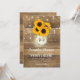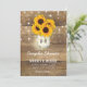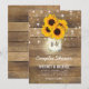 Cartes d'invitation de mariage country chic avec un fond en bois rustique, des guirlandes lumineuses, un pot Mason contenant des tournesols et des lucioles scintillantes, et un modèle de mariage élégant facile à personnaliser.