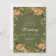 Un cadre riche et olive encadre une cascade de fleurs de pivoines vives et peintes et de feuillage délicat. Ce design évoque une élégance rustique et une beauté naturelle.