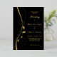 Cette belle faire-part de mariage dans votre choix d'or, d'argent, ou de feuille d'or rose et de noir donnera un sens de l'élégance à votre mariage! L'avant gauche est ornée d'un tourbillon gracieux orné de quelques feuilles. Votre texte mariage est à droite de l'image. Tout est placé sur un arrière - plan noir dramatique. Le dos de l'invitation est également noir solide.. Elégant pour toute saison !