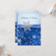 Faux de neige d'argent sur un arrière - plan de flocons de neige bleu décoré d'une image imprimée de Faire-part de mariage de ruban bleu