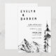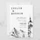 Forêt Montagne Faire-part de mariage avec des montagnes dessinées à la main, la nature, de grands arbres, faire-part de mariage paysager pittoresque.
