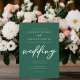 Ce faire-part de mariage vert émeraude massif présente une typographie blanche classique pour un couple qui se marie dans une forêt ou un autre lieu naturel. Célébrez votre amour avec cette couleur tranquille et coordonnez avec notre collection de typographie minimaliste correspondante.