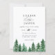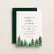 Faire-part de mariage rustique de la forêt aquarelle. De beaux arbres peints dans des tons verts à la mode avec un support couleur émeraude coordonné. L'invitation présente un style design typographique chic mélange de calligraphie et de type audacieux.