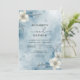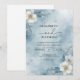 Un délicat lavage à l'aquarelle dans le blues cool crée un paysage merveilleux d'hiver serein. Des notes florales subtiles et des branches gelées évoquent une atmosphère éthérée et élégante, parfaite pour une fête hivernale.