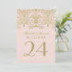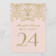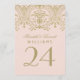 D'élégants numéros de table d'inspiration vintage sont dotés d'un monogramme mariage et d'un design décoratif orné de bordures avec un aspect brillant or métallique antique et une couleur arrière - plan rose pâle. Design recto-verso. Customisez et ajoutez chaque carte de numéro de table à votre panier individuellement.