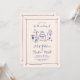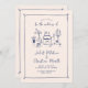 Cette faire-part de mariage est basée sur la tendance populaire dessinée à la main qui propose des plats et des boissons de style français ou italien dans un style fantaisiste, gribouillant, doodle. Ce design est idéal pour un mariage décontracté et décontracté dans un jardin. Il présente de charmantes illustrations dessinées à la main d'un vase de fleurs, une bouteille de champagne, un gâteau mariage, un porte-bougie et des verres de vin.