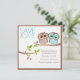 Invitation Mariage de Hiboux Brun et Aqua Enregistrer la Date
