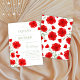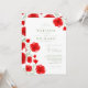 Carton d'invitation de mariage de jardin floral élégant à l'aquarelle rouge coquelicot avec feuillage vert, tons de sauge, typographie élégante et motif floral (dos).