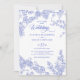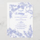 Découvrez l'art de l'amour avec ce design de faire-part de mariage de chinoiserie bleu Delft. La superbe typographie et les délicates oeuvres d'art bleues confèrent à ce design une atmosphère romantique et vintage. Parfait pour votre mariage vintage ou de jardin. Commandez vos invitations imprimées et les fournitures de fête ou téléchargez vos invitations numériques dès maintenant pour une journée qu'ils n'oublieront jamais !