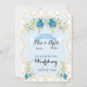 Des bordures fleuries dorées et des tons bleus doux encadrent deux colombes blanches, symboles de l'amour et de l'unité. Inspiré d'une romance intemporelle, ce design allie élégance et symbolisme sincère. Un choix gracieux pour les couples à la recherche d'une carte de mariage significative.