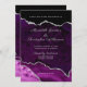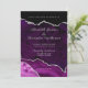 Élégante invitation de mariage géode agate dans les tons violet rose et argent fausse parties scintillant couleurs.