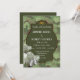 Invitations sur le thème des mariages de l'Armée de terre. Un beau et élégant thème mariage de l'armée, sur l'arrière - plan un motif de l'armée devant une frontière verte de l'armée avec un texte blanc. Sur le dessus des anneaux mariages dorés et deux belles roses blanches sur le dessus des roses 2 étiquettes de l'armée avec initiales