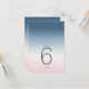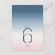 L'arrière - plan de toutes les pièces de cet ensemble mariage est un dégradé de couleurs qui attire l'oeil du bleu prussien au rose et blanc doux. La carte de numéros de table mariage présentée ici présente un design élégant et moderne et une police sans serif contemporaine pour ajouter à son attrait. Ajoutez facilement les numéros de table, les initiales et la date du mariage à l'aide du modèle fourni. Recherchez ID741 pour voir l'ensemble complet des produits correspondants dans Ciel prussien ou choisissez l'une des autres combinaisons de dégradé disponibles pour convenir à votre palette de couleurs mariages.
