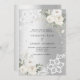Pour une mariage élégante et romantique. Un arrière - plan faux argenté décoré de fleurs blanches, de roses, de dentelle blanche et de faux diamants. Personnalisez et ajoutez vos noms et détails.