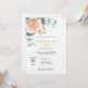 Un arrière - plan blanc chic. Décoré d'or rose et de fleurs roses rousses, de fleurs roses et de feuilles d'eucalyptus vert aquarellés, de sprigs, de verdure et d'une fausse feuille d'or. Personnalisez et ajoutez vos noms et les détails du mariage. Lettres noires et dorées.