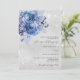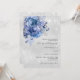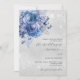 Arrière - plan à l'aspect argent faux décoré de fleurs bleues et étincelants de parties scintillant faux. Personnalisez et ajoutez vos noms et les détails du mariage. Lettres de couleur noire.
