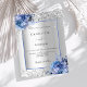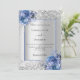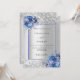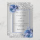 Faux silver looking background decorated with blue roses, flowers and confetti. Personalize and add your names and wedding details. Black letters.