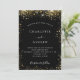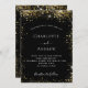 Une invitation de mariage moderne et élégante. Arrière - plan noir décoré de parties scintillant faux or scintillent. Personnalisez et ajoutez vos noms et les détails du mariage. Lettres de couleur blanche.