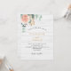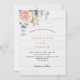 Bois blanc comme arrière - plan. Décoré d'or rose et de fleurs roses rousses, de fleurs roses et de feuilles d'eucalyptus vert aquarellés, de sprigs, de verdure et d'une fausse feuille d'or. Personnalisez et ajoutez vos noms et les détails du mariage. Lettres noires et dorées.