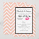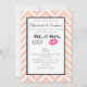 Une invitation de mariage de style moderne avec des lèvres roses et une illustration de moustache rétro. Sur un fond chevron pêche. Personnalisez avec tous vos détails de mariage.