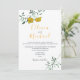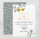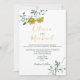 Invitation de mariage de minimony florale jaune simple et moderne, avec une combinaison chic de verdure et de couleur grise tendance. Invitation parfaite pour une cérémonie de mariage intime unique.