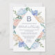 Cette carte de monogramme en diamant bleu poussiéreux est parfaite pour un mariage de printemps ou d'été. Le design somptueux présente des pivoines bleu clair disposées avec des fleurs de pêche et de crème dans une magnifique couronne en forme de losange. Pour plus d'options de libellé faire-part de mariage, veuillez consulter la collection complète de mariages floraux bleu poussiéreux : https://www.zazzle.com/collections/119258621398169461