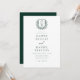 Présentez votre mariage avec une magnifique invitation vert émeraude et un élégant monogramme de crête florale. La douce teinte verte sauge dégage beauté naturelle et sérénité, tandis que la crête florale ajoute une touche intemporelle et sophistiquée. Parfait pour les couples à la recherche d'un design raffiné et gracieux, cette invitation allie charme classique et élégance moderne. Le monogramme personnalisé en fait le vôtre, donnant le ton d'une célébration inoubliable. Idéal pour les mariages de jardin ou de loisirs, cette invitation reflète parfaitement votre journée spéciale.