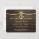 Carton d'annonce « attachez la boucle » avec photo de fiançailles au verso, en bois sombre avec corde nautique dorée et nœud d'ancrage. La carte de format pratique 4,5 x 5,5 est un moyen moderne et élégant d'informer vos invités de votre mariage à destination, mariage nautique ou mariage en paquebot.