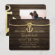 Bois sombre, nœud de corde nautique dorée et ancre, faire-part "Attachez le nœud" avec photo de fiançailles au verso. La carte pratique de format 4,5 x 5,5 est un moyen moderne et élégant d'informer vos invités de mariage de votre mariage à destination, mariage nautique ou mariage sur un bateau de croisière.