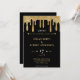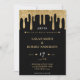 Faire-part de mariage goutte-à-goutte de parties scintillant noire et or. Personnalisez-le avec les détails de votre événement.