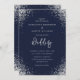 Elégante invitation à mariage bleu marine et argent avec parties scintillant argent sur un arrière - plan bleu marine avec typographie moderne. Des invitations de mariage chic, parfaites pour un mariage élégant et luxueux bleu marine et argent.