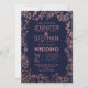 Elégant, moderne, joli, glamour et chic faux rose or brillant parties scintillant floral frontière motif dessinée à la main avec parties scintillant éparpillée sur un arrière - plan bleu marine, invitations de mariage. Ce design classique et sophistiqué convient parfaitement au couple marié branché et élégant. Personnalisez-vous avec votre propre message sur le devant ainsi qu'un monogramme customisé sur le dos. Toute la conception d'impression photo.