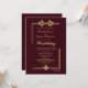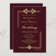 Un faire-part de mariage bordeaux moderne avec une bordure et un texte de script en faux or. Cette invitation comprend des informations sur la cérémonie et les lieux de réception. Pour vous assurer de répondre à vos invités, un rappel RSVP a été inclus au bas de l'invitation. Vous pouvez supprimer ce texte si vous le souhaitez.
