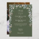 Un élégant faire-part de mariage fleur sauvage aquarelle fleuri qui encadre vos détails de célébration mariages, dans une élégante typographie blanche sur un arrière - plan élégant vert olive. Avec votre photo spéciale au verso. Conçu par Thisisnotme©