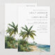 Cette invitation de mariage de plage tropicale aquarelle moderne peut être personnalisée avec vos informations en typographie moderne et toutes vos informations spéciales de jour de mariage au verso, y compris votre RSVP, hébergement et détails supplémentaires. Conçu par Thisisnotme©