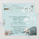Invitation Mariage de plage aux coquillages bleus en bois élé