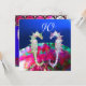 Élégant, coloré et vibrant mère de perle, hippocampes amoureux avec des œillets damassés stylisés, fleurs en sarcelle, bleu aqua, vert, couleurs fuchsia conçues pour le papier métallisé glace ou champagne. Élaboration de photographie et de graphisme numérique par Bulgan Lumini (c)