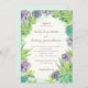 De magnifiques plantes succulentes aquarelle peintes à la main par ma fille très talentueuse. Des nuances de vert, de sarcelle et de violet créent la bordure sur ce magnifique carton d'invitation de mariage.
